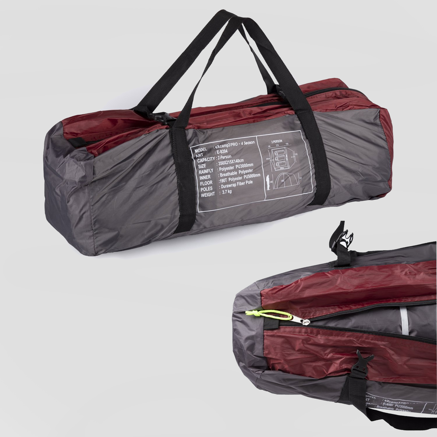 - Dış tentesi %100 polyester 210T Diamond grafik kumaşı, Drytech kaplaması sayesinde PU/ 3000 mm/cm² su sütunu dayanıklılığa sahiptir.
