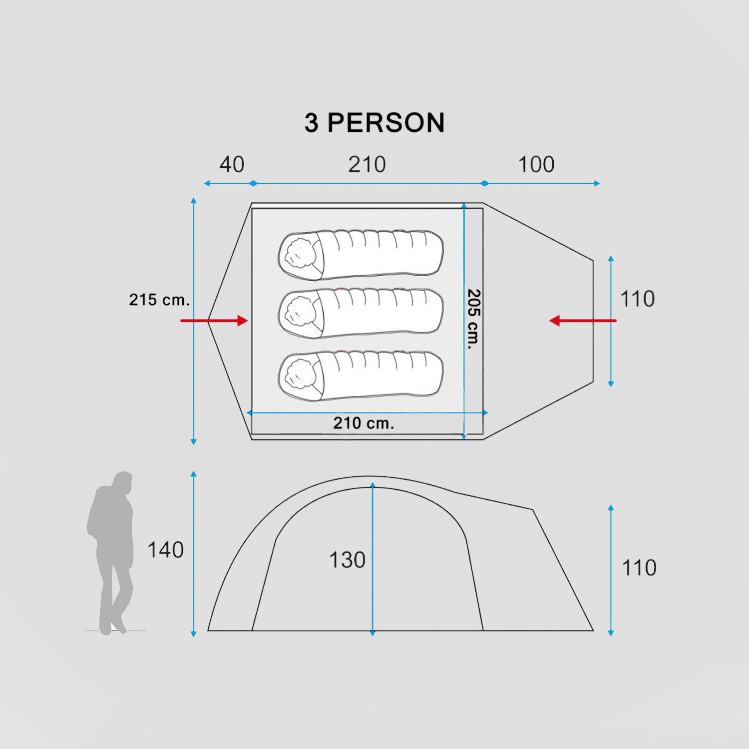 - Çadırın boyutu 350x215x130 cm. dir